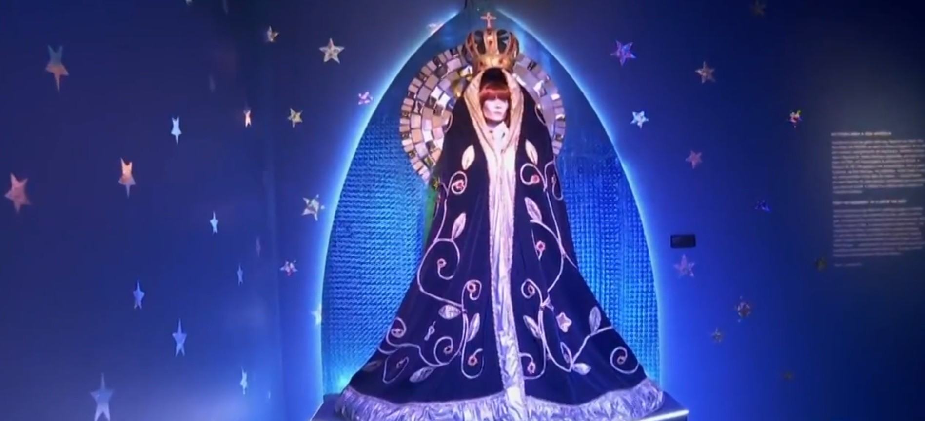 Reprodução do figurino de Rita Lee como Nossa Senhora no Museu da Imagem e do Som
