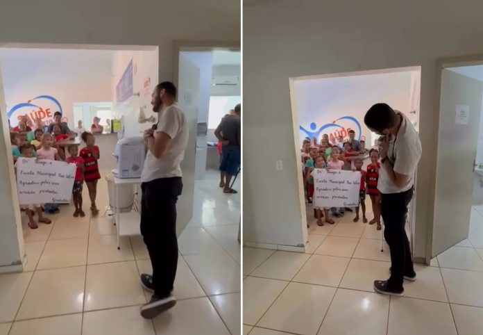 Médico recebeu homenagem de crianças em unidade de saúde no Tocantins