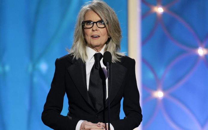 Diane Keaton recebe o prêmio Cecil B. DeMille no lugar do cineasta Woody Allen, que foi homenageado pelo conjunto de sua obra no 71º Globo de Ouro.