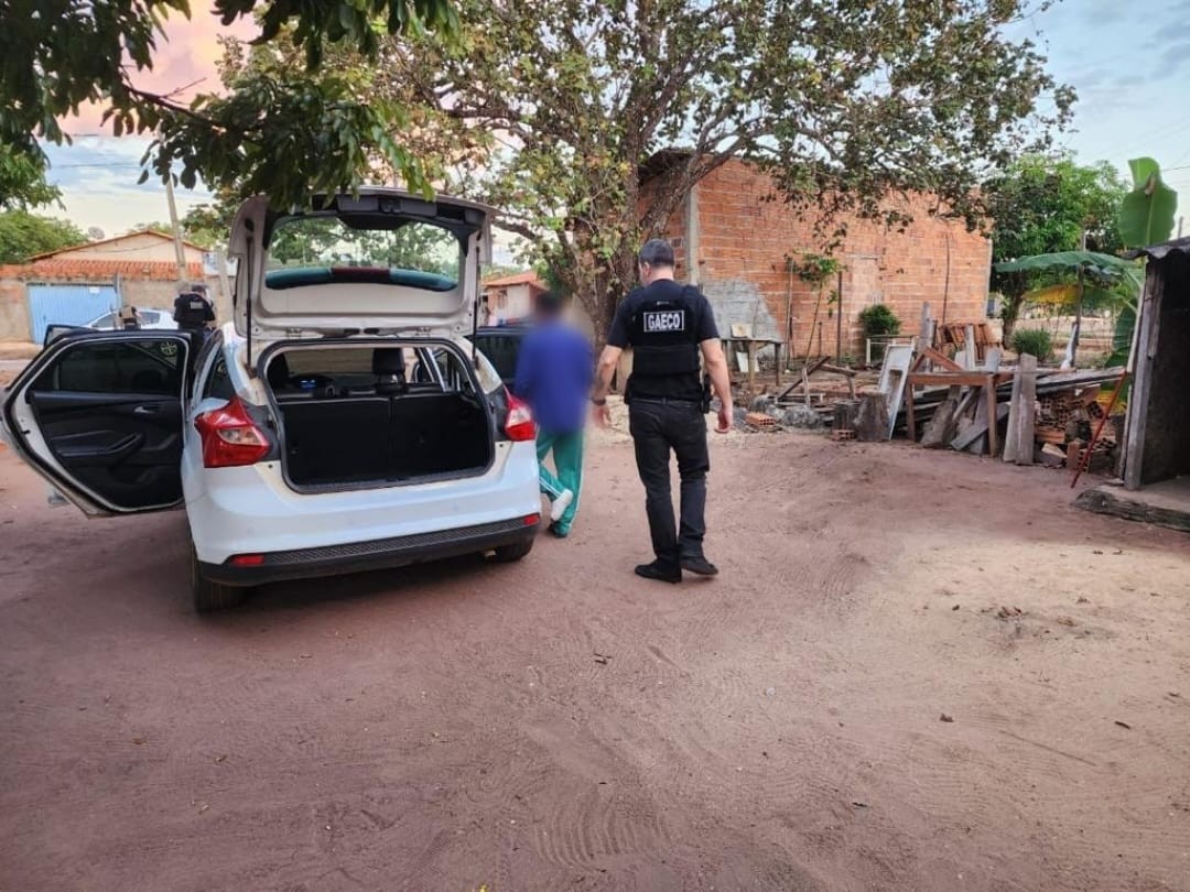 Suspeito sendo preso durante operação do Ministério Público e Polícia Civil