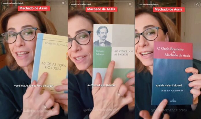 “E dentre todos os livros que ela leu, é claro que ela ficou assombrada com a qualidade do Machado de Assis e do ‘Brás Cubas’, falou sobre isso e, graças a ela, o ‘Brás Cubas’ entrou para a lista de mais vendidos da Amazon. Queria parabeniza a Courtney, ao TikTok, e aproveitar a minha estreia aqui pra dar algumas dicas pra vocês que tem a ver com Machado de Assis”.