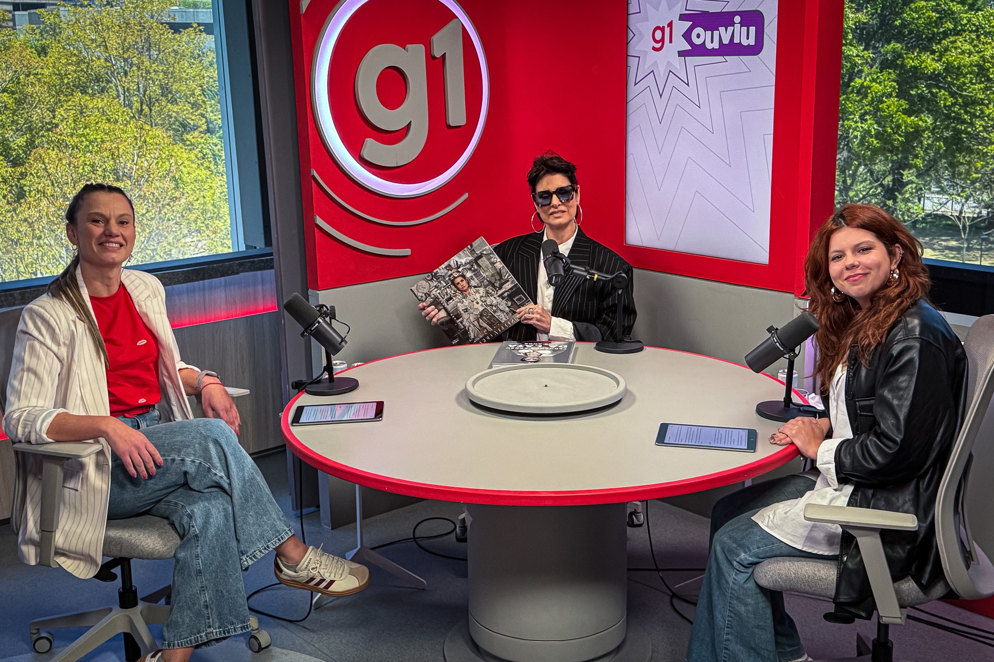 Fernanda Abreu é entrevistada pelas jornalistas Marília Neves e Dora Guerra no programa g1 Ouviu, no estúdio do g1 em São Paulo