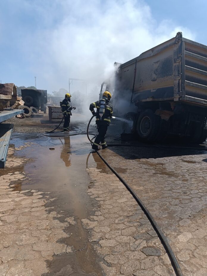 Além de atingir o caminhão, uma maquina de solda e outros equipamentos da oficina também foram atingidos pelo fogo.