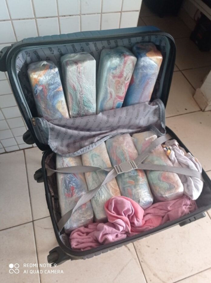 Uma mala e uma sacola da passageira estavam no compartimento inferior de bagagem e tinham pelo menos nove tabletes de maconha embalados e armazenados nos compartimentos. Ao todo, a PRF contabilizou 29,4 kg do entorpecente.