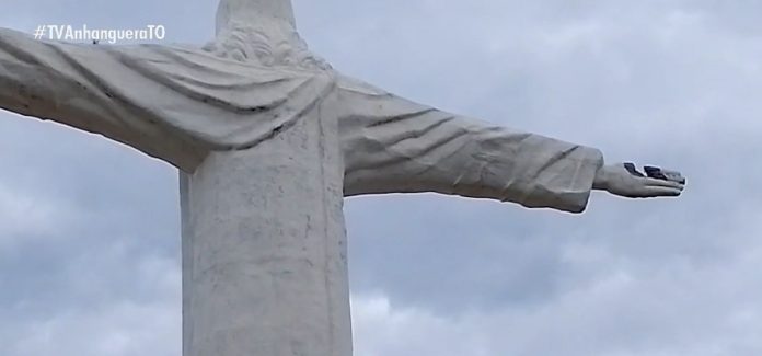 Raio mata urubu ao atingir mão do Cristo Redentor no Tocantins; VÍDEO