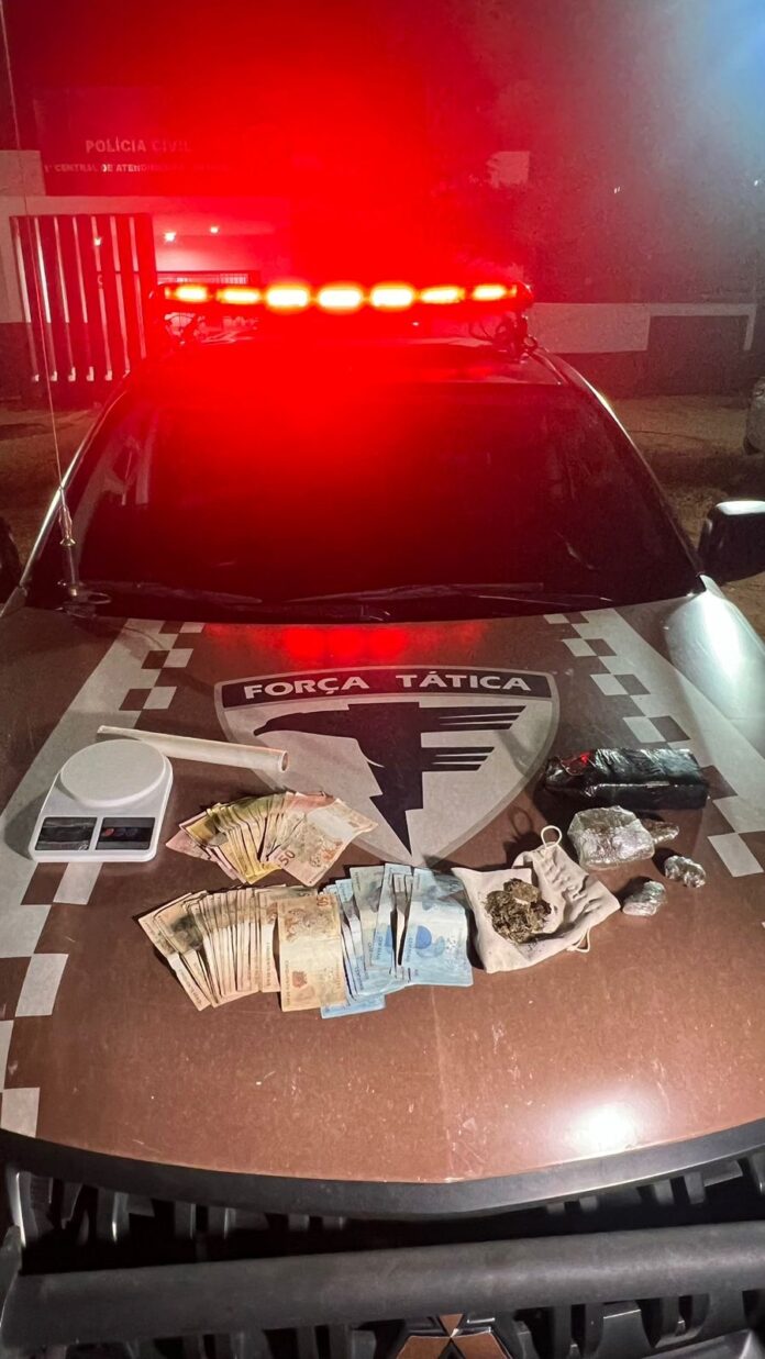 Um homem de 26 anos foi flagrado com drogas e itens usados para o tráfico, além de R$ 5,2 mil em dinheiro. A companheira dele também foi presa na ação realizada na região norte de Palmas. O suspeito usava tornozeleira quando foi encontrado por equipes policiais.