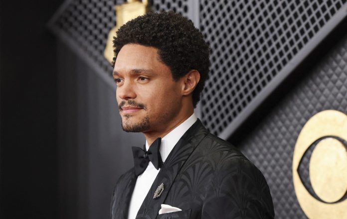 O comediante Trevor Noah na chegada para a cerimônia dos Grammy 2026, que ele apresentou, em 1º de fevereiro de 2026.
