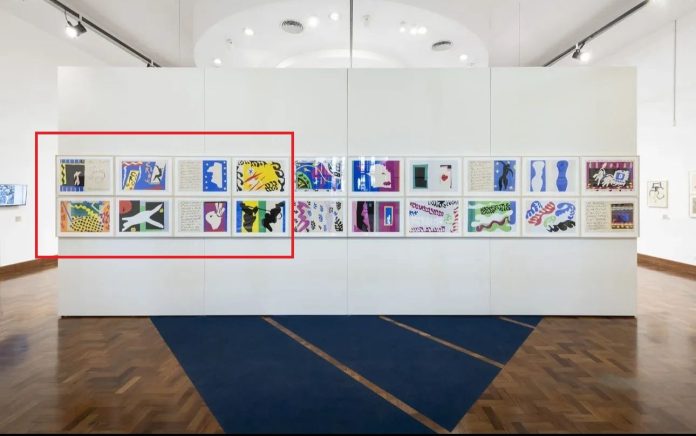 O perfil da biblioteca chegou a publicar neste sábado (6) uma foto da exposição. Nela, é possível ver as telas que estavam sendo expostas eram ilustrações de um livro raro de Matisse, que se chama Jazz. A exposição exibia 20 pranchas impressas de Matisse.