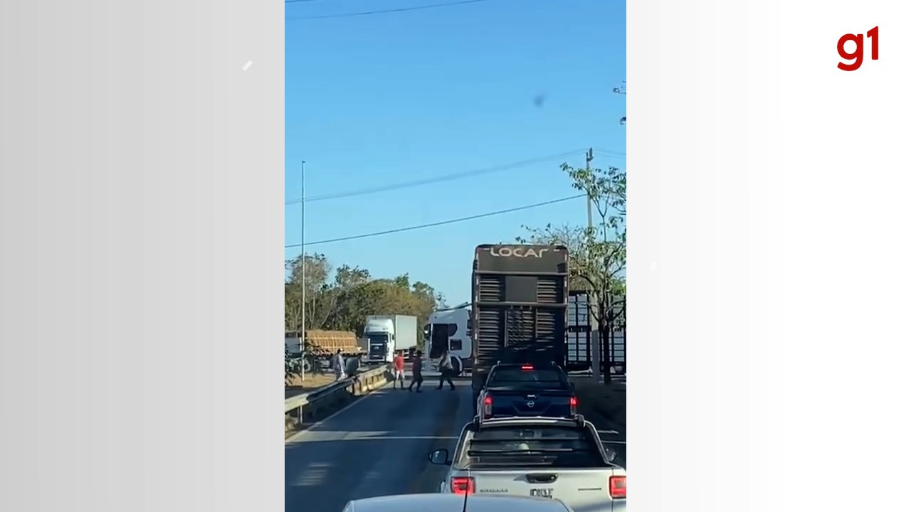 O motivo da briga e os nomes dos envolvidos não foram informados. No vídeo é possível ver um caminhão atravessado na pista, impedindo a passagem dos demais. Além disso, há outros dois caminhões gaiola estacionados ao lado da rodovia.