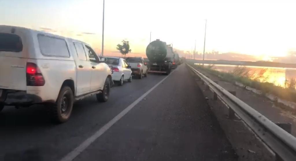 Em um vídeo gravado pelo estagiário da CBN Tocantins Marcelo Rodrigues da Silva, é possível ver o congestionamento, que impedia que caminhões de grande porte e carros menores atravessassem a ponte. (Assista acima)